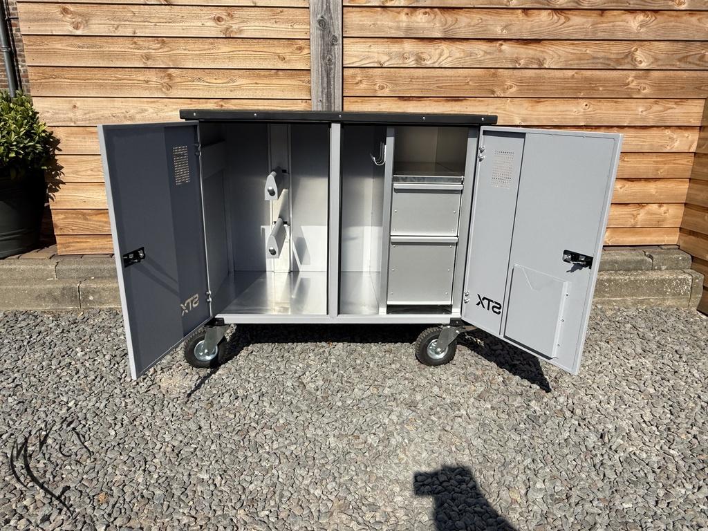 - Heeft dubbele afsluitbare deuren (sleutels aanwezig)