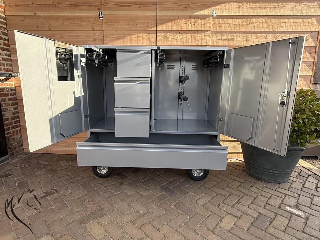 MVV concourskasten.NL verkoopt zadelkasten, stalkasten en wedstrijdkasten die verrijdbaar zijn in diverse modellen groot en klein, luxe tot zeer luxe. Voor meerdere takken van de paardensport kunt u bij MVV concourskasten.NL terecht. Wij leveren aan paardenmensen uit de Dressuursport, Springsport, Rensport, Mensport, Western en Eventing. Een concourskast is handig, mooi en ideaal voor meerdaagse wedstrijden om uw spullen in op te slaan en te vervoeren.