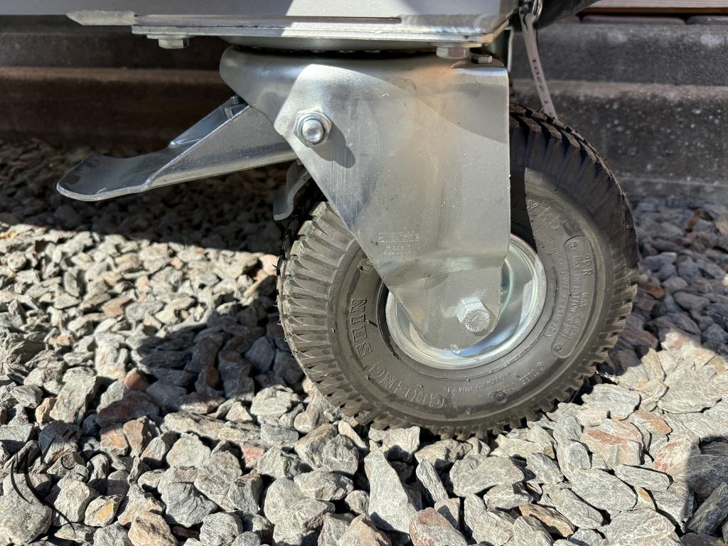 - Uitgerust met 4 luchtbanden met rem (Ø260mm), 2 vast en 2 met zwenkwielen en rem (incl. lier oog)
